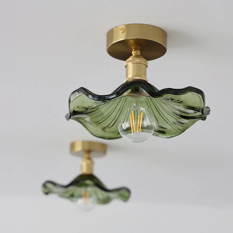 Dekorativ loftlampe med glaslampeskærm i bladform