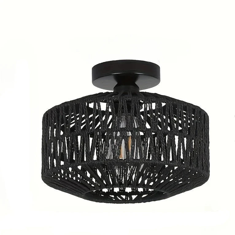 Loftmonteret plafondlampe med skærm af snor